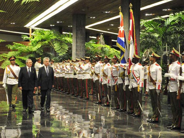O presidente dos Conselhos de Estado e de Ministros, general-de-exército Raúl Castro Ruz, recebeu na tarde de 2 de março ao presidente federal da República da Áustria, Ex.mo sr. Heinz Fischer, quem realiza uma visita oficial ao nosso país.
