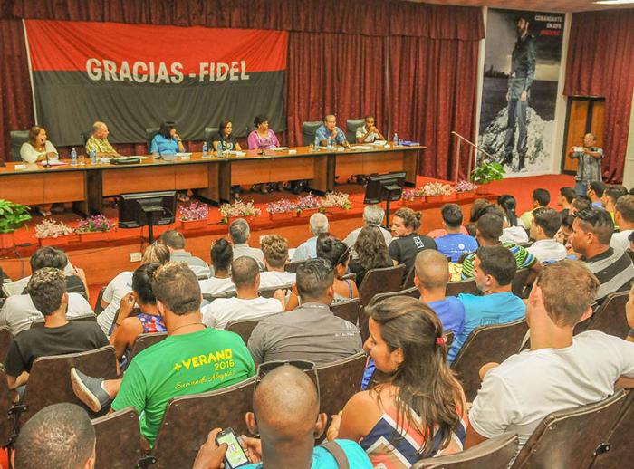 Presidiram o encontro Olga Lidia Tapia, do secretariado do Comitê Central do Partido; Jennifer Bello, presidenta da FEU e membro do Conselho de Estado; Susely Morfa, primeira secretária do Comitê Nacional da Juventude Comunista, entre outros dirigentes.
