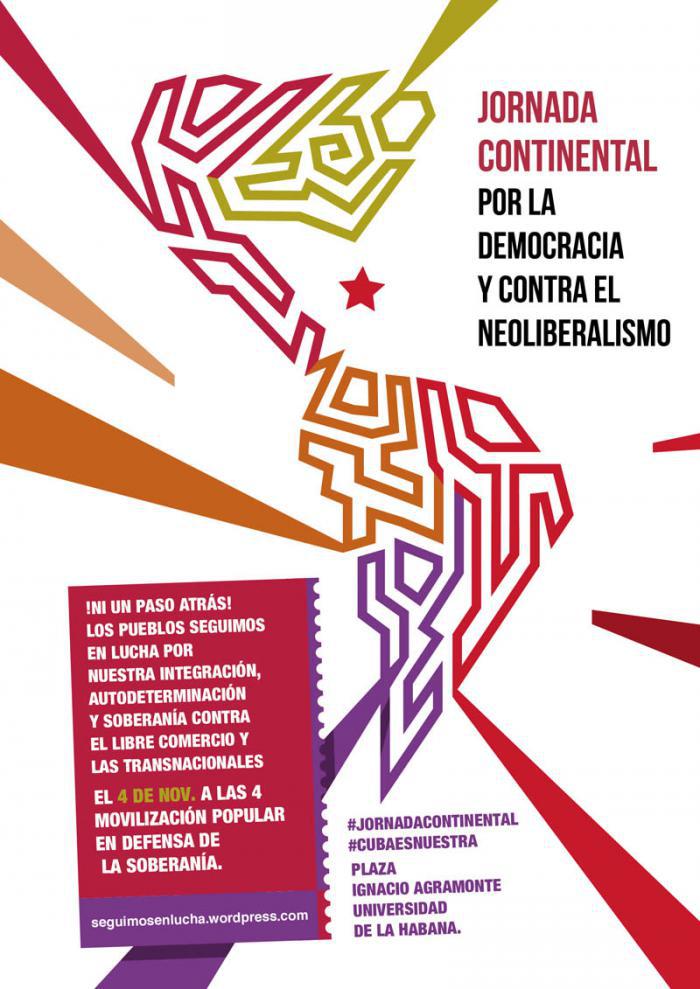 A realização de uma jornada continental de mobilização em 4 de novembro foi um dos acordos do Encontro Hemisférico pelos 10 anos da derrota do Alca, realizado no passado ano na capital cubana, com o objetivo de demonstrar a capacidade de convocatória dos movimentos sociais de esquerda em resistência.