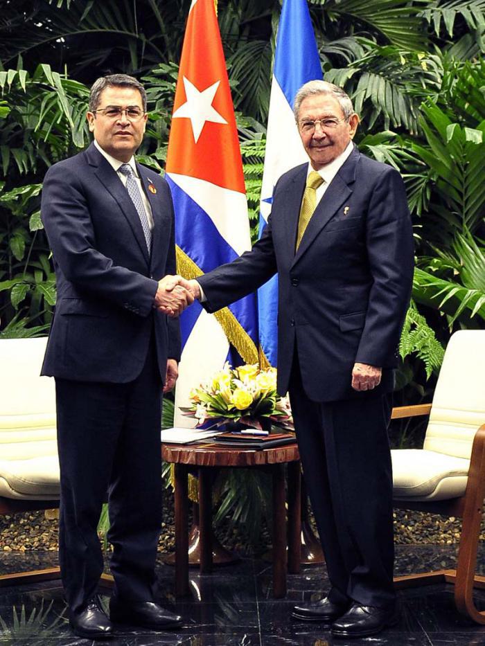 O presidente dos Conselhos de Estado e de Ministros, general-de-exército Raúl Castro Ruz, recebeu na quinta-feira, 24 de novembro, o presidente da República de Honduras, Exmo sr. Juan Orlando Hernández Alvarado, quem se encontra de visita oficial em nosso país.