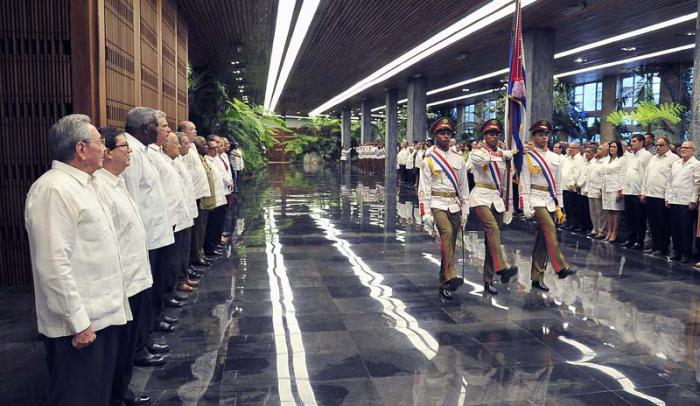 Previamente, e como parte da cerimônia, teve lugar também a colocação de uma oferenda floral ao Herói Nacional José Martí, na base do Monumento da Praça da Revolução.