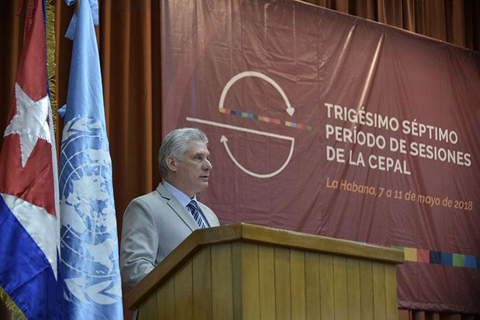Desejo-lhes sucessos nas reuniões de trabalho que realizarão nos próximos dias e reitero o firme compromisso de Cuba com a Cepal, com a integração latino-americana e caribenha, com a irmandade e a solidariedade entre nossas nações e na luta comum pelo desenvolvimento econômico e social da América Latina e o Caribe, ratificando a tese de José Martí: «É preferível o bem de muitos do que a opulência de poucos».