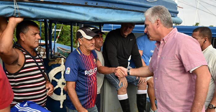 Em uma das ruas do conselho popular de Surgidero de Batabanó, ainda afetado pelas enchentes causadas pelo evento meteorológico, Díaz-Canel conversou com os moradores que se reuniram ali ao conhecer da sua presença, acerca dos problemas de drenagem do território, o que provoca que, diante de qualquer eventualidade climatológica, a água se acumula e leva vários dias para baixar seu nível; da necessidade da população entender que não se podem construir casas perto da costa; e dos planos para mudar a imagem do município.