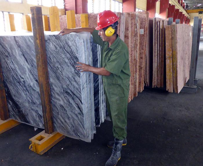 José Miguel Rodríguez, diretor do combinado industrial, disse ao Granma Internacional que até agora tinham processado cerca de 4 mil metros quadrados entre mármore vermelho campina, procedente de Cienfuegos, e cinzento siboney, da Ilha da Juventude; enquanto aguardam o avanço do desenvolvimento da mineração na nova pedreira local da rocha Crema Valle, para adicioná-la como um item exportável.