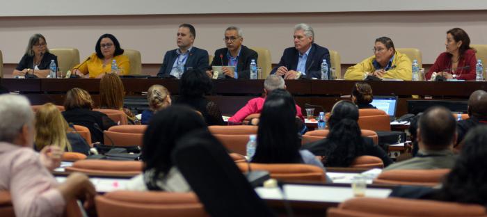 Díaz-Canel também se referiu às ações de digitalização realizadas e mencionou algumas instituições que, devido ao valor de seus recursos e sua especialização, ocupam um papel hierárquico na conservação.