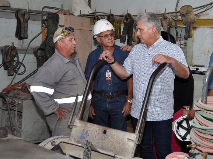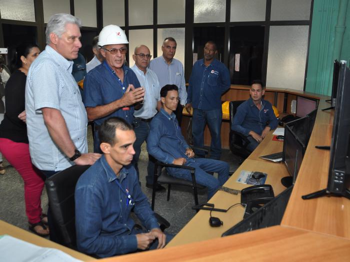 Acompanhado pelo vice-primeiro-ministro Alejandro Gil Fernández e Liván Arronte Cruz, ministro de Energia e Mineração, o presidente Díaz-Canel, como sempre, visitou a instalação e conversou com os trabalhadores no local.