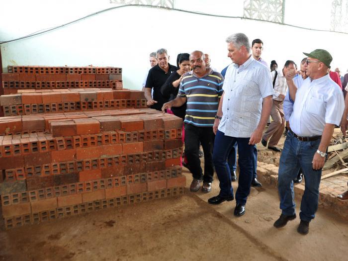 A cerca de seis quilômetros da capital da província, o presidente chegou ao centro de produção local de materiais de construção El Jardín, um local onde as capacidades foram consolidadas para, quando a disponibilidade de recursos permitir, produzir os elementos necessários para construir uma casa diária.