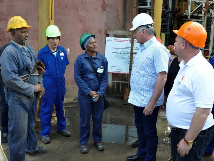 Acompanhado pelo vice-primeiro ministro e chefe de economia e planejamento, Alejandro Gil Fernández; o ministro da Construção, René Mesa Villafaña, o presidente da República, insistiu na prioridade que deve ser dada à mudança na matriz energética da usina, em cujos telhados podem ser instalados painéis solares.