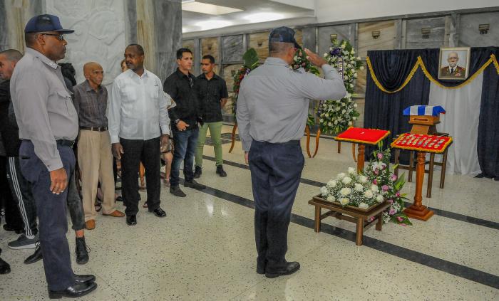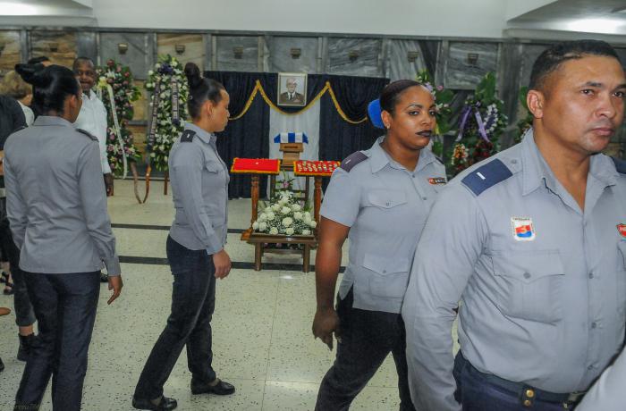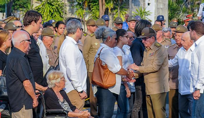A última guarda de honra dos restos mortais do eterno combatente foi feita pelo primeiro secretário do PCC, general-de-exército Raúl Castro Ruz; o segundo secretário do PCC, José Ramón Machado Ventura; o ministro das Forças Armadas, general-de-corpo-de-exército Leopoldo Cintra Frías e o general da reserva Samuel Rodiles Planas.