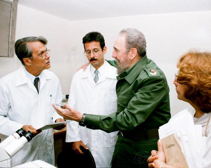 O anterior, como também a criação de centros de pesquisa biotecnológica de primeiro nível mundial, a formação de milhares de cientistas altamente qualificados e comprometidos com a saúde do seu povo, os que permaneceram em Cuba, defrontando-se com carências e escassez, apesar da política sistemática de roubo de cérebros, atiçada a partir do Norte contra todos os países do Sul e que o assédio estadunidense se multiplica no caso cubano, é resultado da visão de Fidel, que desde o começo da década dos 80, estimulou a produção nacional de medicamentos, como o Interferón; novas vacinas contra doenças tais como a hepatite B e a meningite meningocócica; anticorpos monoclonais para o tratamento de diferentes tipos de câncer, e remédios únicos no mundo, como o que impede a amputação do pé nos diabéticos em um altíssimo número de casos, entre outros muitos resultados. Igualmente, pesquisas inovadoras, relacionadas com o cérebro e meios de diagnóstico próprios que permitem detectar precocemente deformações congênitas no feto, doenças presentes no sangue, como o HIV e outras, às que se vem acrescentar a Covid-19. Todos esses tratamentos estão disponíveis, muitas vezes gratuitamente ou a um custo simbólico, para os cubanos em nível comunitário, que, além disso, são vacinados sem pagamento algum desde a infância contra 13 doenças.