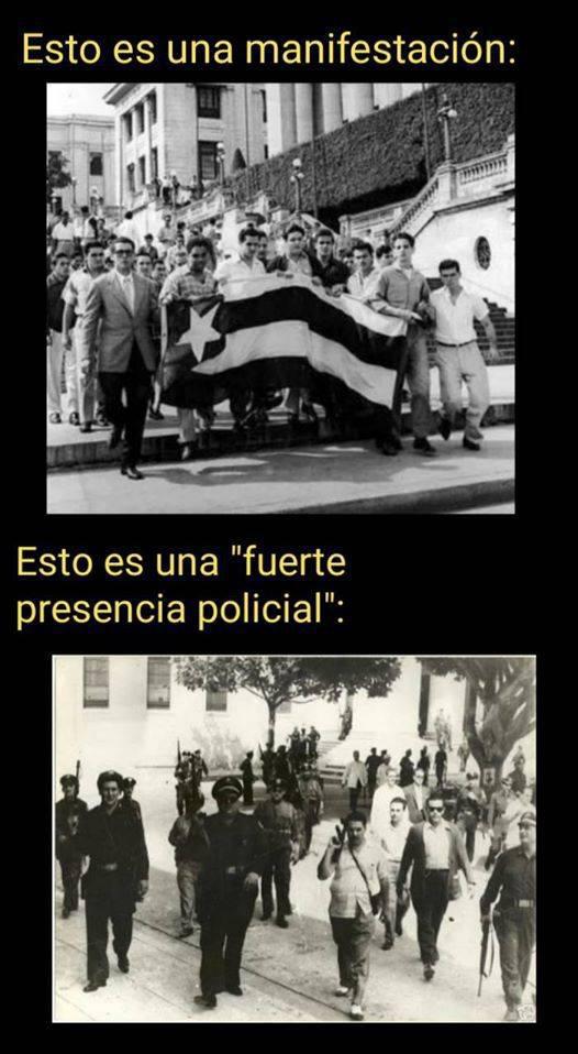 Agora que os Estados Unidos afirmam que nesta Ilha há uma ditadura, aqueles que com o apoio do vizinho do Norte asseguram que se opõem a ela, afirmam que a polícia não os deixa sair a se manifestar, mas nenhum deles é capaz de fazer o que faziam aqueles que se enfrentavam sem pedir licença à democracia que torturava e assassinava aos milhares, com o apoio do país que diz defender a liberdade de expressão e informação em Cuba, mas que persegue com fúria a quem determina exercê-la, se não o consegue silenciar. Eis os casos de Julian Assange e de Edward Snowden para demonstrá-lo.