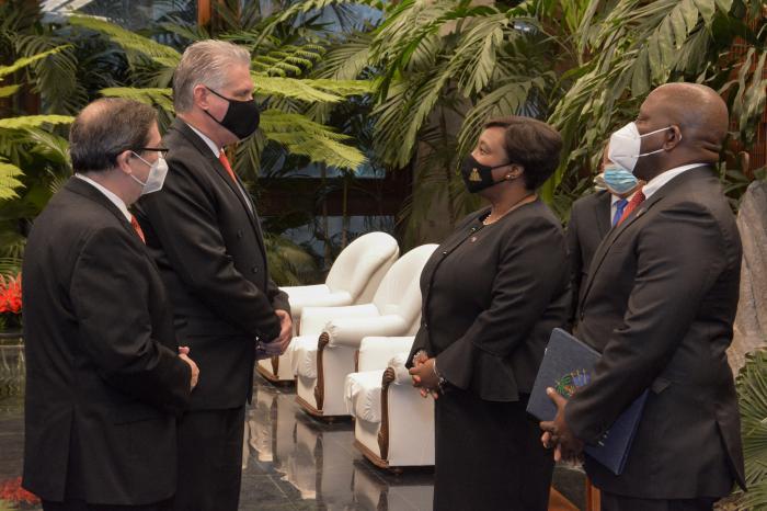 Conforme relatado pelo site Cubaminrex, pouco antes deste momento, o presidente cubano falou, por meio de uma cerimônia virtual compartilhada com a sede de Cuba nas Nações Unidas, com o Ex.mo sr. Jörundur Valtýsson, embaixador da Islândia; o Hon. sr. Viliami Va'inga Tone, embaixador do Reino de Tonga, e o Hon. sr. Sidi Mohamed Laghdaf, embaixador da República Islâmica da Mauritânia.