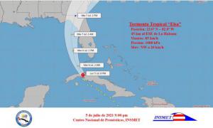 Depois de entrar no estreito da Flórida na noite da segunda-feira, 5 de julho, a tempestade tropical Elsa deve se mover hoje para perto do norte-noroeste, para se afastar gradualmente de Cuba.