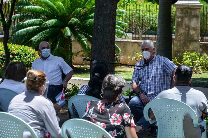 Apenas à uma da tarde, quando o sol estava bem forte e depois de quase quatro horas no bairro San Isidro, em Havana Velha, o presidente Miguel Díaz-Canel Bermúdez chegou à avenida Paseo, entre as ruas 11 e 13, a casa do Vedado sede da Federação das Mulheres Cubanas, lugar escolhido para mais um daqueles diálogos que a presidente mantém nestes dias com diversos atores da sociedade cubana.
