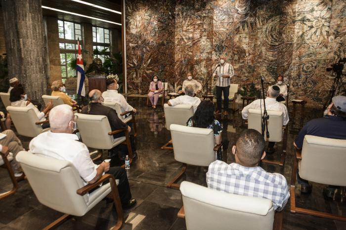 «Eu acredito que com encontros como este, com o que vocês fazem no dia a dia, com o que vocês contribuem, estamos fortalecendo o respeito com que sempre nos tratamos: estamos fortalecendo valores compartilhados», disse o presidente, em uma troca que foi também presidida pelo membro do Bureau Político e secretário de Organização e Política de Quadros, Roberto Morales Ojeda; pelo membro do secretariado e chefe do Departamento Ideológico do Comitê Central, Rogelio Polanco Fuentes; e pela chefa do Gabinete de Atenção aos Assuntos Religiosos do Comitê Central, Caridad Diego Bello, quem afirmou: «Esta reunião é a continuação das realizadas pelo chefe histórico da Revolução, Comandante-em-chefe Fidel Castro Ruz, com representantes de vários setores religiosos durante os anos 70, 80 do século passado». Também lembrou o encontro de 2 de abril de 1990, «que abriu um caminho nas relações Igreja-Estado».
