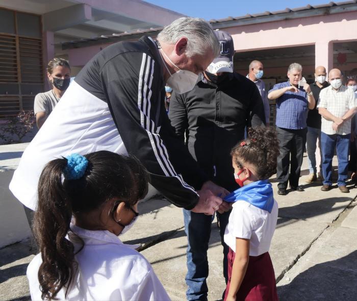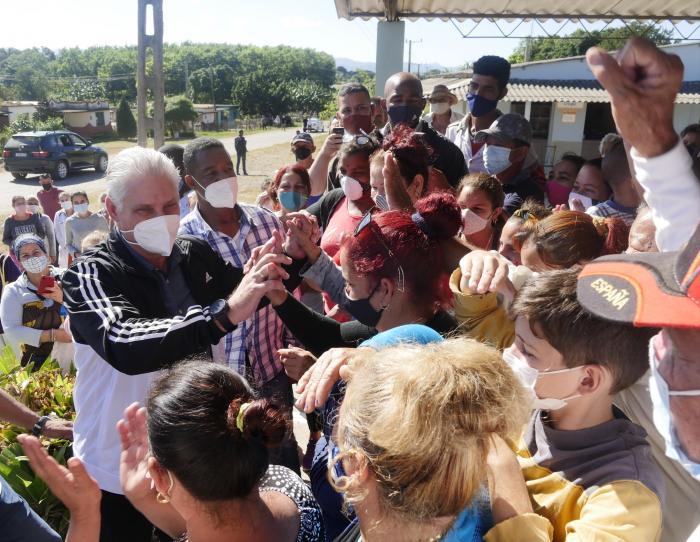 A turnê de Santa Clara havia começado no bairro Condado, onde uma multidão imponente acompanhou o presidente e o aplaudiu com expressões como: «Díaz-Canel nós te amamos» ou «O que for preciso, Canel, o que for preciso», ao que o chefe de Estado respondeu com a mais afetuosa saudação a uma comunidade que o conhece desde os anos em que serviu como primeiro secretário do Partido na província de Villa Clara.