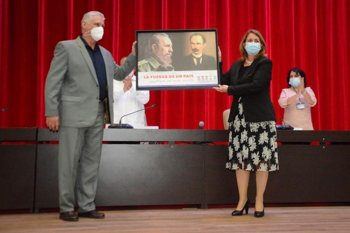 «Os cubanos, as crianças que vão à escola vacinadas, quando crescerem, quando formarem suas famílias, contarão um dia de uma das maiores façanhas do povo em meio a situações muito adversas». Com estas palavras, Díaz-Canel falou aos presentes, aos quais afirmou que o que o BioCubaFarma tem feito nestes tempos «tem sido uma digna homenagem a Fidel, que foi o fundador desta instituição».