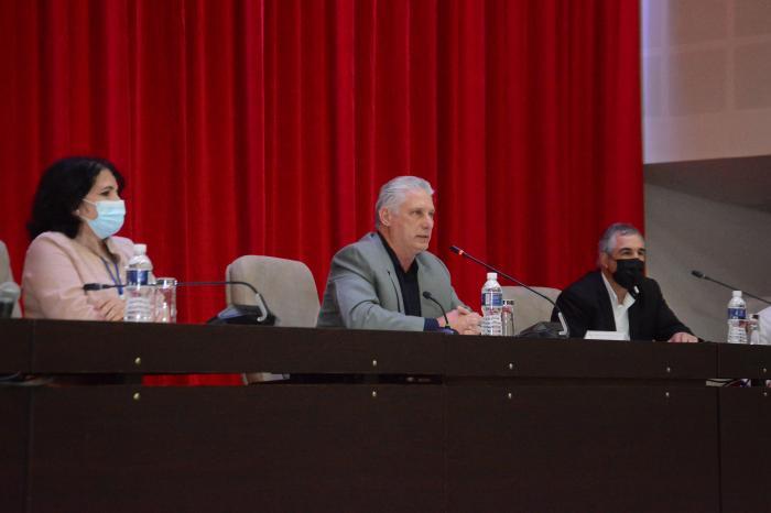 Referindo-se ao desempenho da organização empresarial ao longo deste ano, Díaz-Canel Bermúdez falou de dois marcos: ter conseguido concluir um investimento que é um modelo, um investimento futurista — como o novo Complexo Industrial de Biotecnologia Mariel do CIGB, com cem por cento de capital cubano, e com nosso projeto; e ter conseguido que, quando os ricos do mundo compartilharam vacinas como queriam, a Ilha tenha soberania a este respeito.