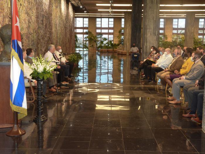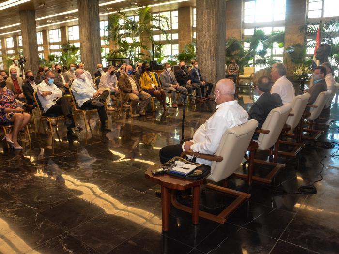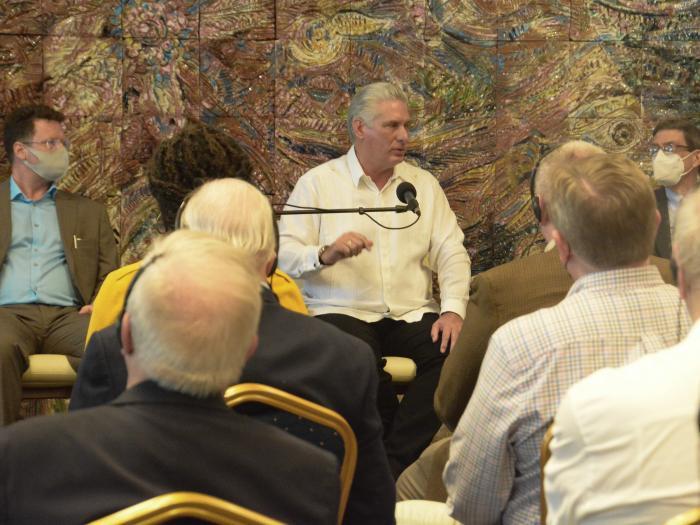 Na introdução à reunião, onde abordou questões da realidade nacional, entre outras, Díaz-Canel agradeceu a esses produtores e empresários por visitarem Cuba em um momento tão complexo para o mundo e também para nosso país.