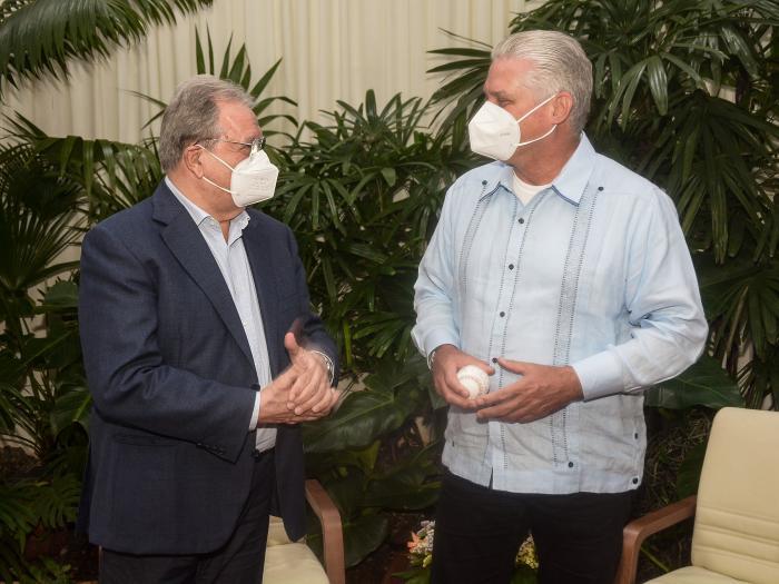 Díaz-Canel também agradeceu ao visitante pelo «apoio dado ao nosso país em um grupo de programas e projetos para fortalecer o desenvolvimento destes esportes», e enfatizou o escopo do memorando para a proteção da contratação de atletas cubanos, que foi assinado na quarta-feira, 4 de maio, pelos presidentes da WBSC e da Federação Cubana de Beisebol.