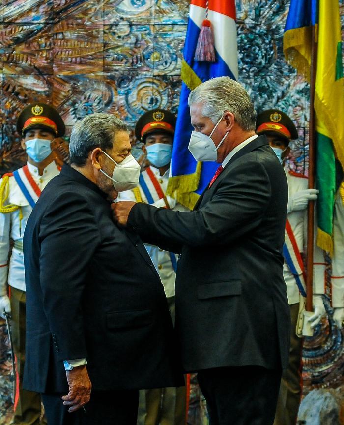 O primeiro-secretário do Comitê Central do Partido Comunista de Cuba e presidente da República, Miguel Díaz-Canel Bermúdez, condecorou na quinta-feira, 26 de maio, com a Ordem Nacional José Martí ao honorável dr. Ralph Everard Gonsalves, primeiro-ministro e ministro das Relações Exteriores, Segurança Nacional, Assuntos Jurídicos e Informação de São Vicente e Granadinas, por sua contribuição para o aprofundamento dos laços de amizade, fraternidade e cooperação entre os dois países, e por sua defesa da unidade caribenha e latino-americana.