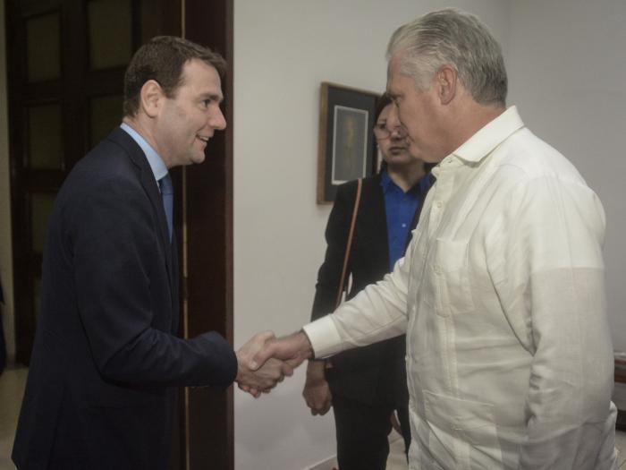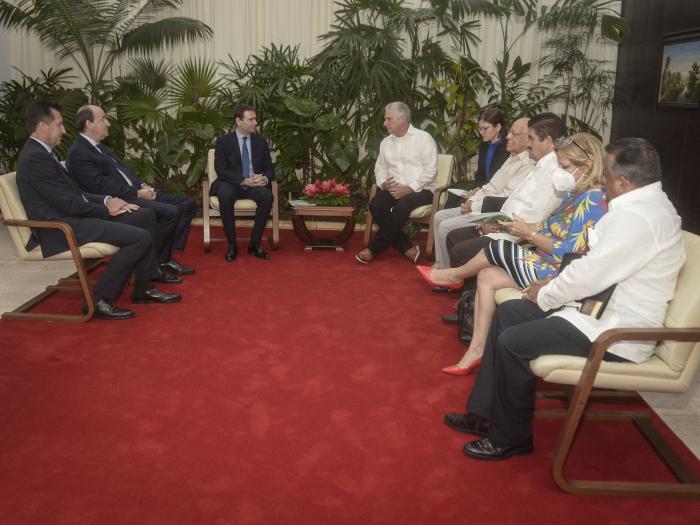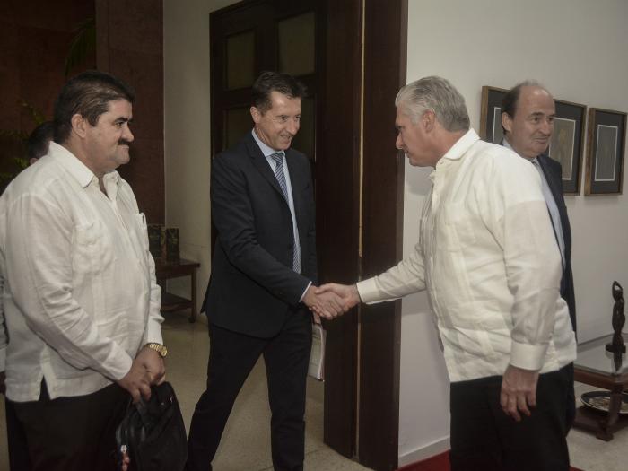 «Para nós é um prazer recebê-lo em nosso país, sei que você teve uma visita intensa, necessária e oportuna, e que será proveitosa», disse o primeiro-secretário do Comitê Central do Partido Comunista e presidente da República, Miguel Díaz-Canel Bermúdez, a Alexandre Ricard, presidente e executivo principal da empresa francesa Pernod Ricard, no Palácio da Revolução, em 29 de junho, à tarde.