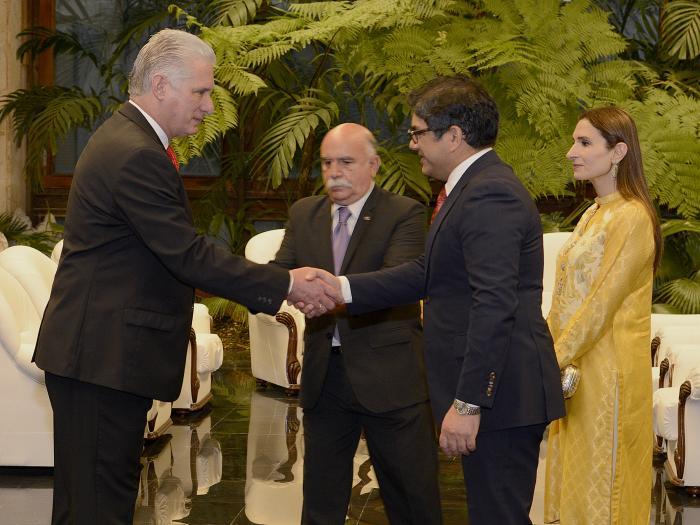 Segundo uma informaçãoo que aparece no Twitter da Presidência da República, o presidente Miguel Díaz-Canel recebeu em respectivas audiencias solenes, as cartas credenciais dos novos embaixadores da Grécia, Colômbia, Síria, Paquistão, Áustria, Azerbaijão, Jamaica, Ordem da Malta, Malta e Gâmbia