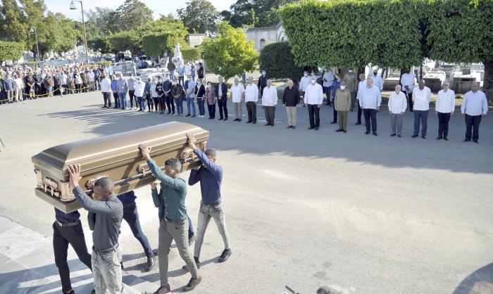 Pouco antes do início da cerimônia e do canto do Hino Nacional, ambos os líderes saudaram os presentes, em particular parentes e amigos do homem que foi combatente na luta clandestina e do Exército Rebelde na Coluna 1, participante das ações da Playa Girón, e que se dedicou, por mais de 30 anos, ao serviço direto do Comandante-em-chefe.