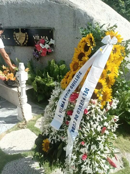 Uma coroa de flores em nome do povo cubano foi colocada em frente ao nicho que guarda suas cinzas, bem como um buquê de flores e gladíolos carregado por Monteagudo Ruiz, Johnson Urrutia, o Herói do Trabalho da República de Cuba Lázaro Expósito e o coronel José Antonio Mugercia López, chefe do Estado-Maior da região militar de Santiago de Cuba.