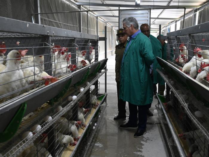O primeiro-coronel Victoriano Dimas Illana, diretor-geral da Empresa Militar Industrial, explicou ao chefe de Estado sobre as produções e serviços que prestam para a melhoria do sistema elétrico do país, com especial ênfase na manutenção e na reparação de equipamento em várias usinas termelétricas; também no abastecimento de água, com a reparação de máquinas de bombeamento em todas as províncias; bem como a produção de coberturas leves de telhados: mais de 60% delas destinadas no último ano à recuperação em Pinar del Río, após a passagem do furacão Ian.