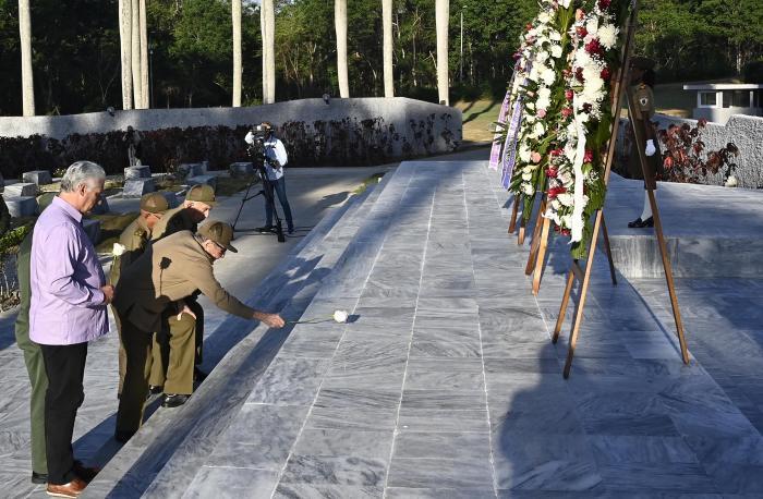 Com o exemplo de quem não descansou um momento sequer nessa luta imperecível para construir e defender a obra da Revolução Cubana, o general-de-exército avançou em direção à Chama Eterna, que arde, como ele mesmo disse, por «todos os combatentes da liberdade, imolados ou heroicamente caídos neste território ao longo do processo histórico, de Hatuey a Fidel; por todos os túmulos espalhados pelas montanhas e vales do 2º Front e por todos aqueles que, sabendo ou não, lançaram os alicerces de nosso presente com seu sangue e nos ensinaram a ser capazes de seguir seu exemplo pelas próximas gerações». Raúl colocou uma rosa branca lá.