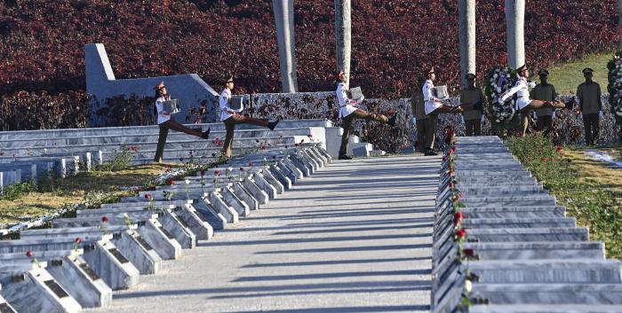 Os parentes dos combatentes acompanharam os ossuários até os túmulos, enquanto os nomes dos 40 guerrilheiros eram ouvidos.