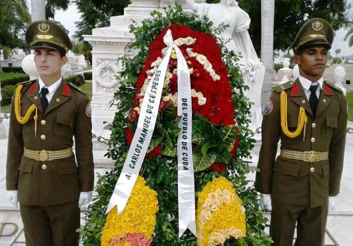 Prévio ao ato nacional, na histórica Praça da Revolução de Bayamo foi efetuada a cerimônia das bandeiras e a colocação de oferendas florais, em nome do povo de Cuba, diante das estátuas de Céspedes e de seu compatriota de luta, Pedro (Perucho) Figueredo. Oferendas signadas pelo povo cubano chegaram também ao cemitério Santa Ifigenia, em Santiago de Cuba.