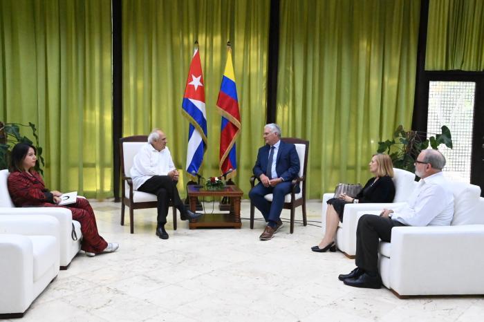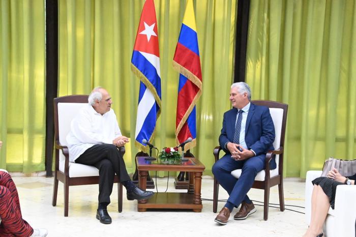 O primeiro-secretário do Comitê Central do Partido Comunista e presidente da República, Miguel Díaz-Canel Bermúdez, recebeu na tarde da segunda-feira, 29 de abril, o ex-presidente Ernesto Samper, a quem reiterou o apoio irrestrito de Cuba à paz na Colômbia.