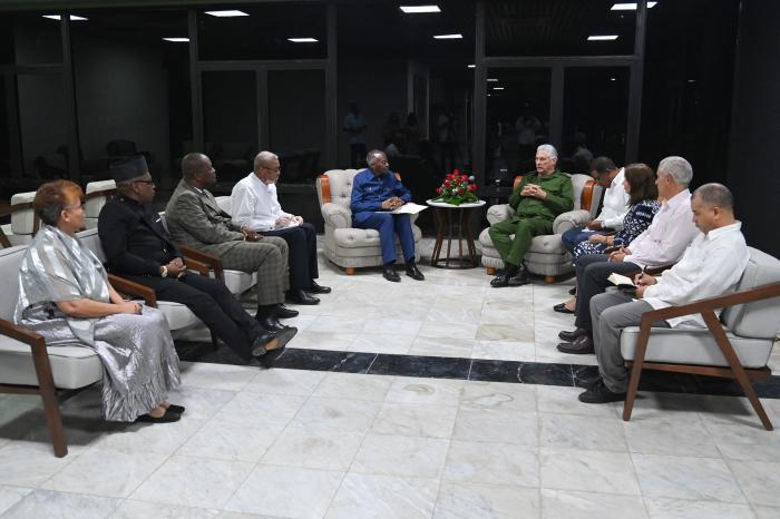 De maneira especial, o chefe de Estado reiterou ao ilustre visitante suas condolências pela perda física do presidente Hage Geingob, falecido em fevereiro deste ano, a quem considerava «um excelente amigo de Cuba», que «seguiu a linha de amizade fundada pelos líderes de ambas as nações, Sam Nujoma e Fidel Castro».