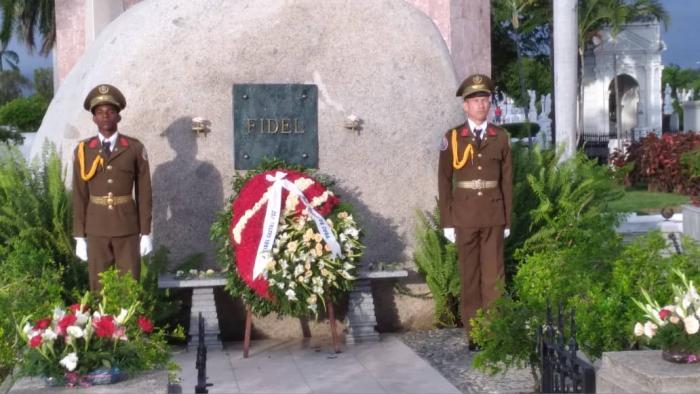 Como prelúdio, uma oferenda floral, em nome do povo cubano, foi colocada em frente ao monólito que guarda suas cinzas, e flores soltas foram colocadas nos monumentos funerários de José Martí, Carlos Manuel de Céspedes e Mariana Grajales, pelas mais altas autoridades políticas e governamentais da província indomada e, especialmente, pelos líderes estudantis, como um sinal da continuidade do legado revolucionário e fidelista.