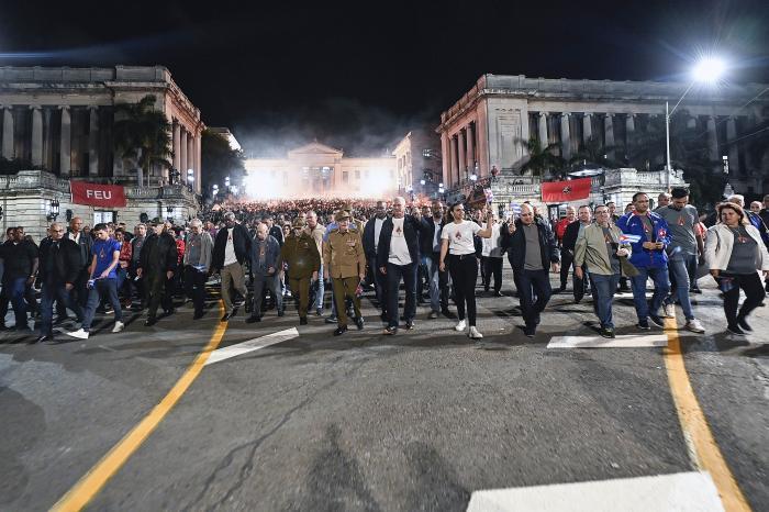 A maré juvenil que iluminou toda Cuba, em 27 de janeiro, à noite, com a luz de José Marti, foi acompanhada em Havana também pelo Comandante da Revolução, Ramiro Valdés Menéndez, e pelo Comandante do Exército Rebelde, José Ramón Machado Ventura, também participante da marcha fundadora dessa tradição revolucionária.