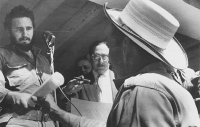 Quatro meses após o triunfo revolucionário em 1959, Fidel cumpriu uma das promessas feitas em AHistóriaMeAbsolverá" ao assinar a Lei de Reforma Agrária, que distribuiu mais de setenta milhões de hectares de terra para cerca de 200.000 famílias camponesas, consolidando a pequena propriedade rural e eliminando o arrendamento abusivo. Finalmente, os camponeses recuperaram o direito à terra, negado sob as condições do neocolonialismo e da exploração.