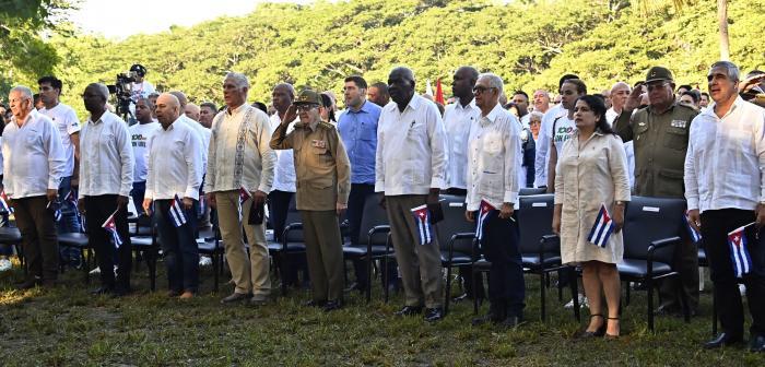 Junto com Raúl, neste local que marcou o início da história da nação, estavam também o primeiro-secretário do Comitê Central do Partido Comunista e presidente da República, Miguel Díaz-Canel Bermúdez; além de outros membros do Bureau Político, dirigentes do Partido, do Estado e do Governo, da União dos Jovens Comunistas (UJC) de organizações de massa, das Forças Armadas Revolucionárias (FARs) e do ministério do Interior (Minint), além de uma representação de jovens das províncias de Santiago de Cuba, Guantánamo e Holguín.