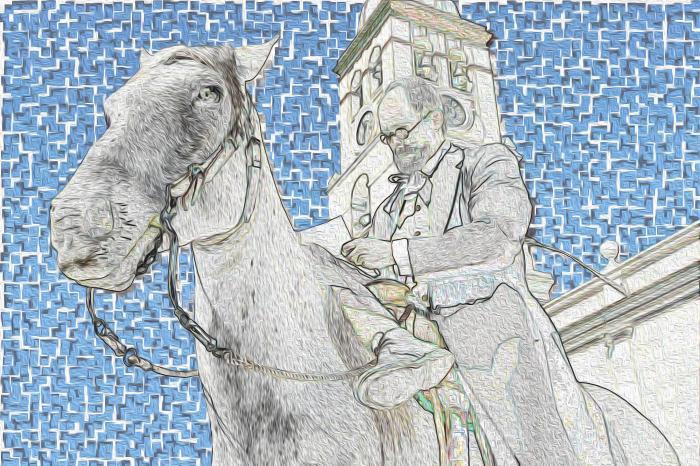 Perucho, com aquela ironia que surge quando a morte perde o poder, sussurra: «Não serei o primeiro redentor a montar num burro». A fera avança lenta e galantemente, como se soubesse que carrega um símbolo, não um prisioneiro.