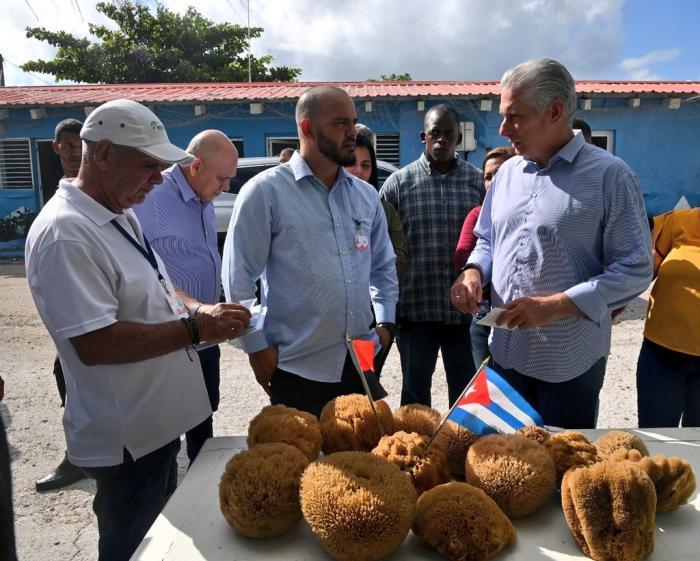Neste território, o chefe de Estado visitou então um centro emblemático: a Unidade Básica de Negócios (UEB) da CaimaR, cujo objeto social é a captura de espécies marinhas na plataforma insular e o desenvolvimento da cultura de esponjas.