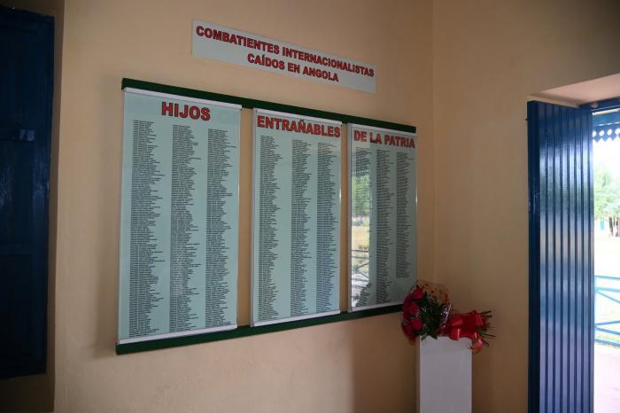 Limonar, Matanzas – Dois buquês de rosas vermelhas foram colocados na manhã desta quinta-feira, 6 de novembro, pelo presidente do Conselho de Defesa Nacional, Miguel Díaz-Canel Bermúdez, aos pés da lista de combatentes internacionalistas mortos em Angola. «Filhos Amados da Pátria», lê-se na faixa que lista os nomes no Museu do Escravo Rebelde, no antigo engenho de açúcar Triunvirato.
