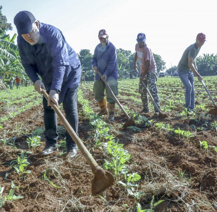 Nas terras de Artemisa, bem perto de Havana, e junto com seus colegas do Comitê Central – entre eles o membro do Bureau Político e secretário de Organização, Roberto Morales Ojeda – o primeiro-secretário dedicou-se ao cultivo de alimentos.