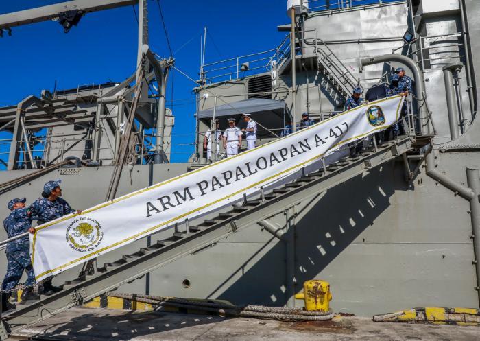 Os navios da Marinha Mexicana Papaloapan e Isla Holbox transportaram a carga em cumprimento às instruções da presidente Claudia Sheinbaum.