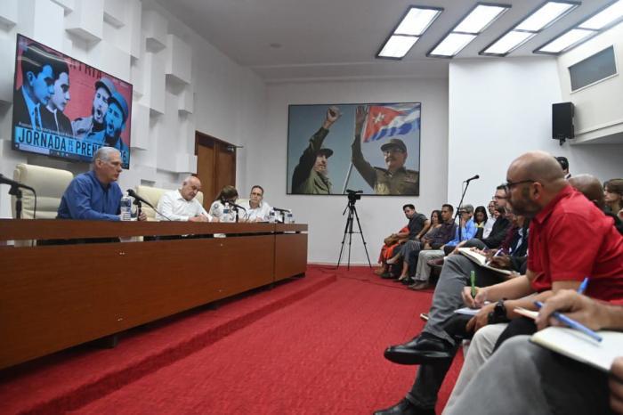 No resumo do encontro, após abordar questões da realidade nacional, o primeiro-secretário do Comitê Central do Partido e presidente da República, Miguel Díaz-Canel Bermúdez, parabenizou todos os trabalhadores da imprensa cubana pelo dia 14 de março.