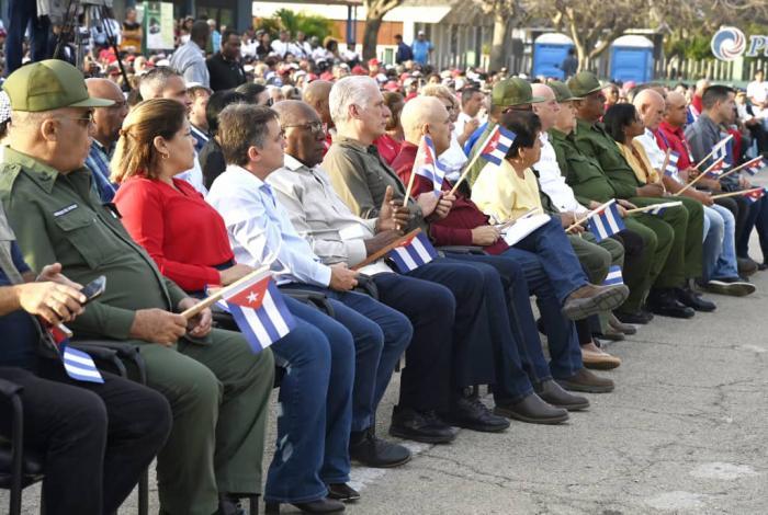 Nós, mais de cinquenta mil cubanos, ratificamos isso no ato patriótico de 16 de abril, comemorando o 65º aniversário da proclamação do caráter socialista da Revolução, onde foi convocado um movimento nacional e internacional para levar a verdade de Cuba a todos os cantos do planeta.