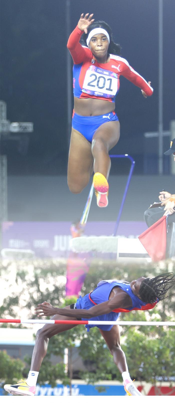 Sua companheira de equipe, Ariday Girón, não quis perder a comemoração na plataforma de saltos ornamentais e, com um salto final de 13,43 metros, somou uma medalha de bronze, tão inesperada quanto a coroação do saltador em altura Diosber Hernández (2,07), graças à perfeição de suas tentativas válidas.