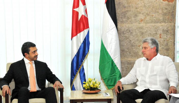 O primeiro vice-presidente dos Conselhos de Estado e de Ministros, Miguel Díaz-Canel Bermúdez, recebeu na tarde da segunda-feira, 5 de outubro, Sua Alteza o xeque Abdullah Bin Zayed Al-Nahyan, ministro dos Assuntos Exteriores dos Emirados Árabes Unidos, quem realizou uma visita oficial ao nosso país.