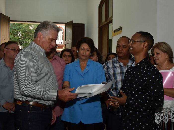 O primeiro centro objetivo de sua visita, segundo a conta oficial do Twitter da presidência dos Conselhos de Estado e Ministros, foi a Escola Secundária Básica Urbana (ESBU), Jorge Arturo Vilaboy, localizada no Conselho Popular Plaza Vieja e que foi objeto de uma reparação de capital.