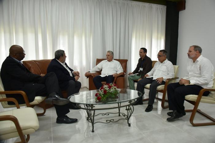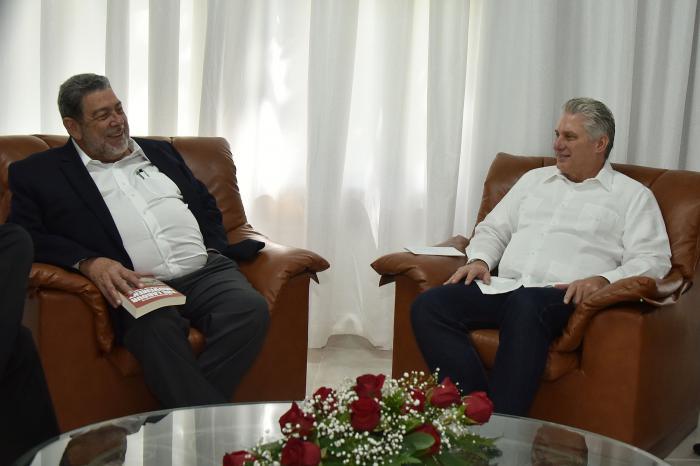 O presidente da República de Cuba, Miguel Díaz-Canel Bermúdez, recebeu no domingo, 3 de novembro, o primeiro-ministro de São Vicente e Granadinas, Honorável Dr. Ralph Gonsalves, que participou do Encontro Antiimperialista de Solidariedade, pela Democracia e Contra o Neoliberalismo , que teve lugar de 1 a 3 de novembro em Havana.